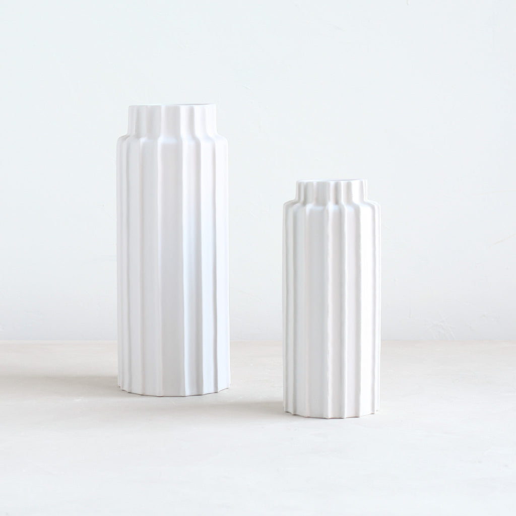 Our ceramic cylinder vases invite you to reconnect with the wild bounty of nature, providing the perfect vessels for a foraged handful or a farmer’s market bunch. Inspired by organic linear forms found in nature, use them for impromptu and loose arrangements or for displaying dried botanicals through the colder months.