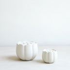 These stand-alone ceramic vases feature a matte-white finish and a soft petal edge. The holes can be filled with water to display flowers or use them for storing pens or brushes at a desk.