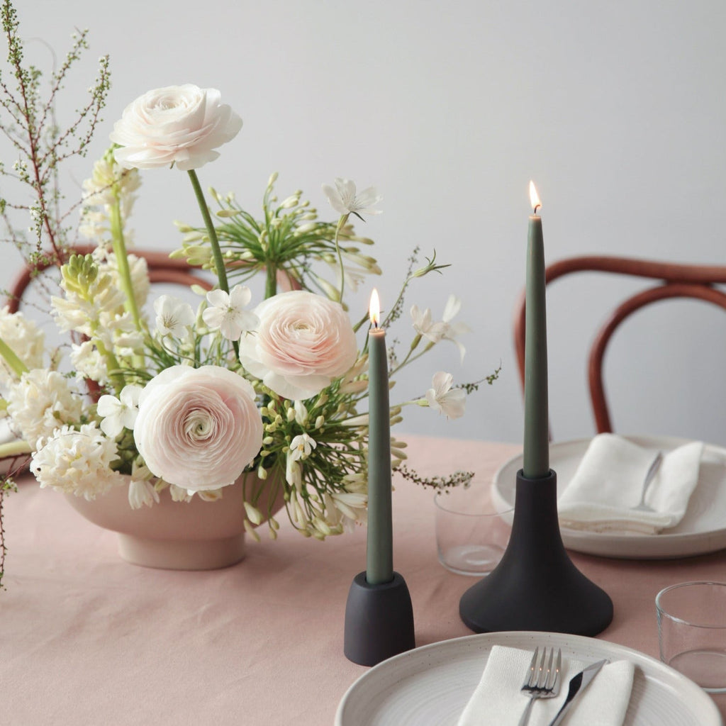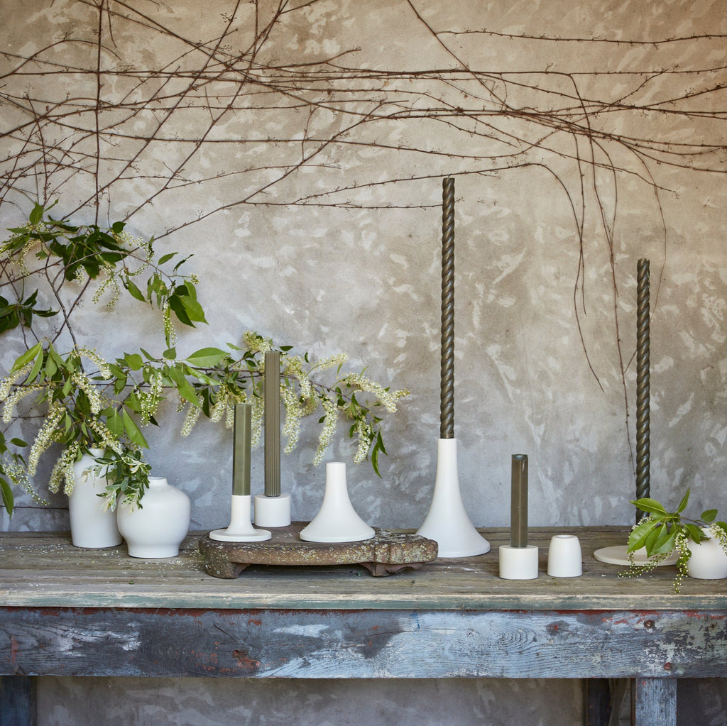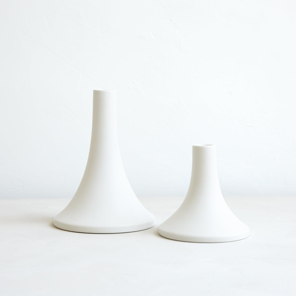 Our ceramic Grand Taper Holders offer a fresh variation in shape and size and boast a clean, matte finish. With stand-alone appeal, they also feel dynamic as a collection. Each holder is sized to fit a standard taper candle.