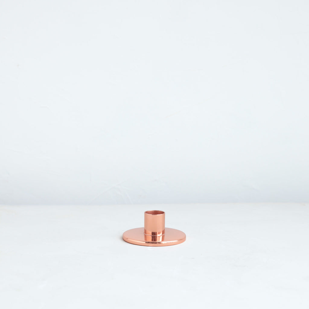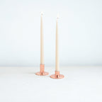 The perfect companion to our taper candle collection, our copper Aura Taper Holders are a sleek, modern way to add a lustrous accent to any space. Each copper plated holder is sized to fit a standard taper candle.